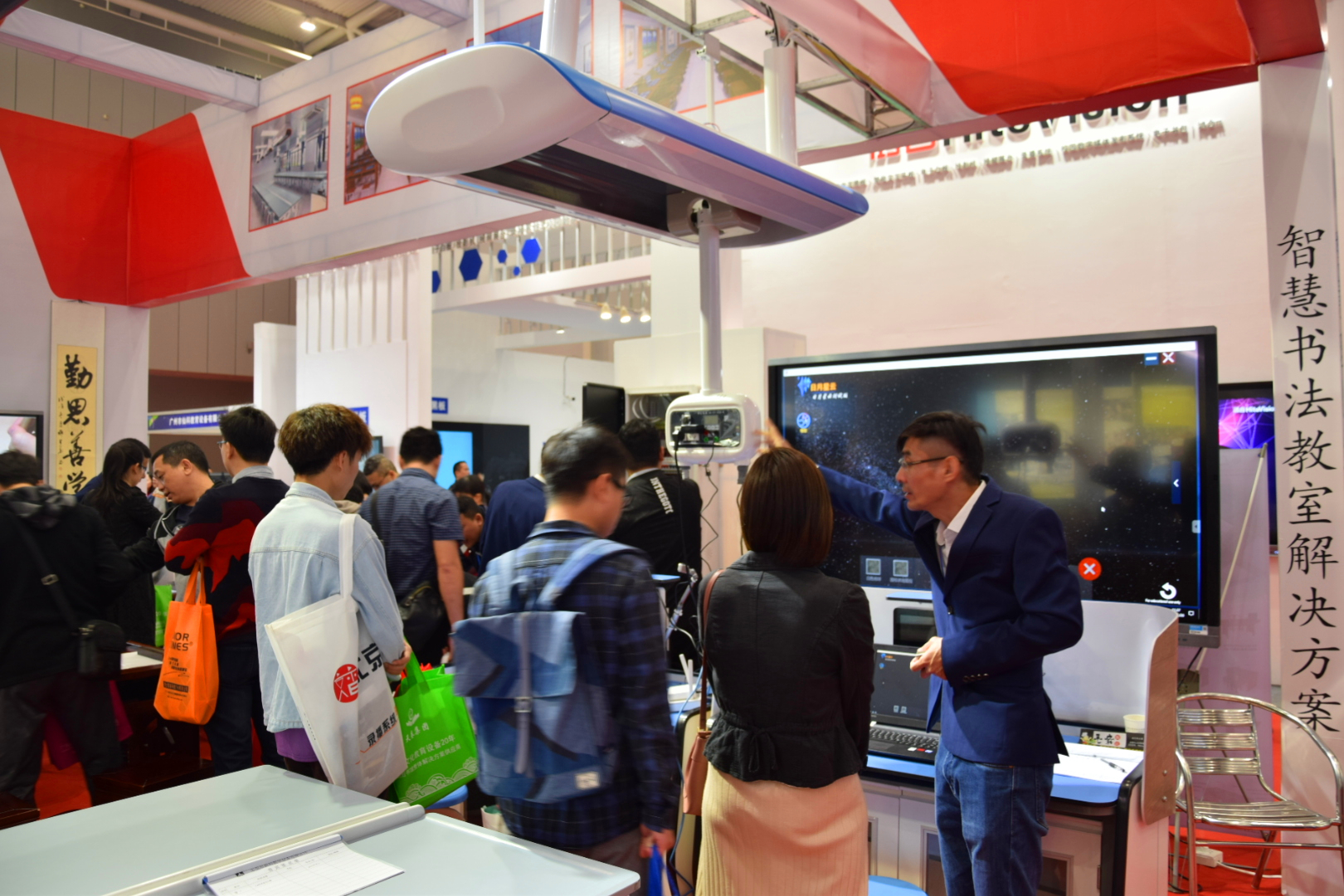 這一次盛大的教育裝備展覽會中,新科教學設備也攜帶了自身的教育裝備產品進駐展會,包括智慧書法教室、智慧實驗技能考核系統實驗室、智慧頂裝系統實驗室及新型材料的實驗室桌椅等產品。在現場,有不少教育行業專家和商家上前咨詢,為新科展位累積了不少人氣。