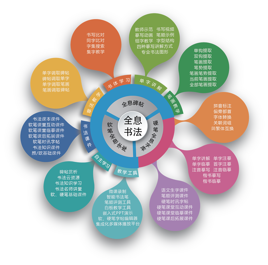 數字書法教學系統 數字書法備課系統 硬筆書寫評測系統 書法教學儀 教師服務器 學生臨摹專用拷貝臺 教師中控條案 學生書法專用桌凳 配套字貼 書法教材 毛筆 墨水 臨摹專用紙 硯臺 學生鎮尺 書畫氈 智能一體機 組合推拉黑板